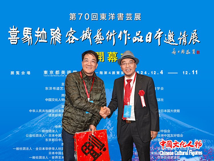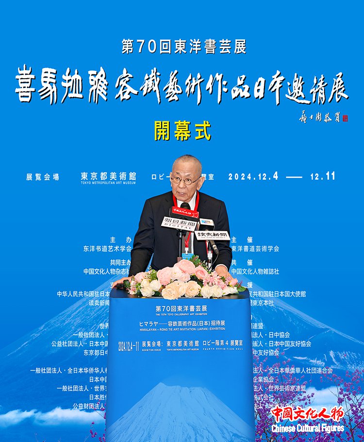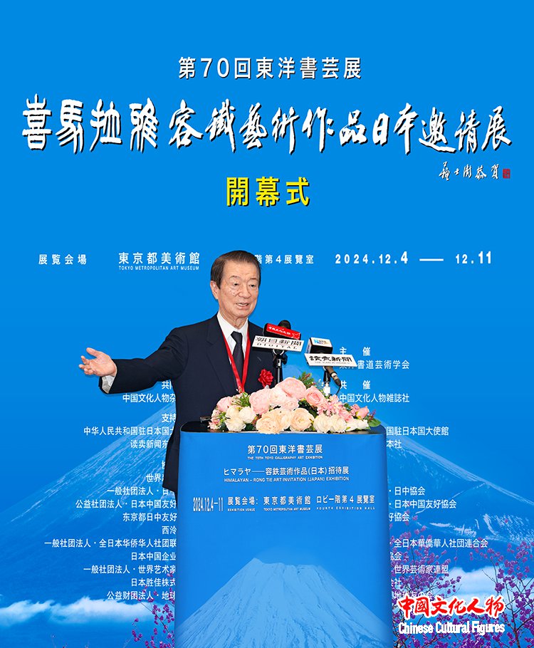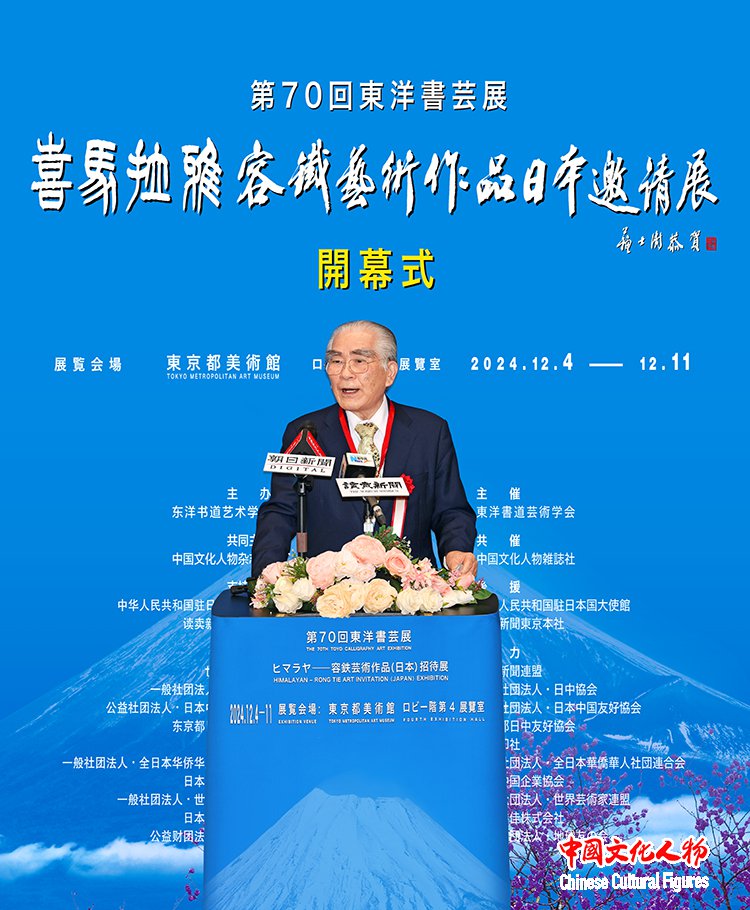 由东洋书道艺术学会主办,中国文化人物杂志社共同主办,中国驻日本国大使馆、读卖新闻东京总社支持,世界新闻联盟、一般社团法人日中协会、公益社团法人日中友好协会、东京都日中友好协会、西泠印社、一般社团法人全日本华侨华人社团联合会、日本中国企业协会、一般社团法人世界艺术家联盟、日本胜佳株式会社、公益财团法人地球之友等单位协办的“第70届东洋书艺展——喜马拉雅——容铁艺术作品(日本)邀请展”开幕式于12月7日在日本东京都美术馆隆重举行