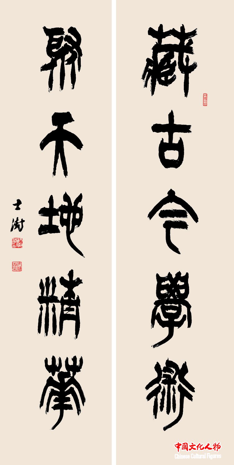 『藏古聚天对联』 48cm×178cm×2 苏士澍书道作品