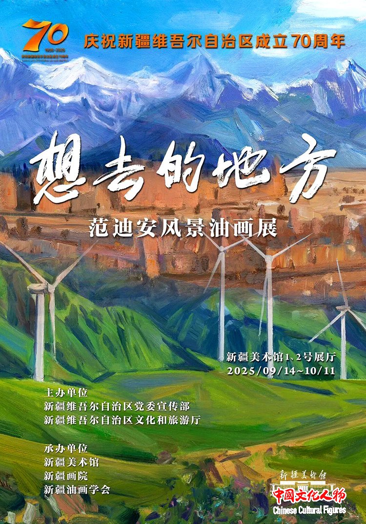 为庆祝新疆维吾尔自治区成立70周年,由新疆维吾尔自治区党委宣传部、新疆维吾尔自治区文化和旅游厅主办,新疆美术馆、新疆画院、新疆油画学会承办的“想去的地方——范迪安风景油画展”于2025年9月14日至10月11日在新疆美术馆举行