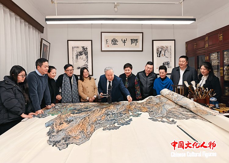 在李可染亲书的“师牛堂”牌匾下,李庚凝神挥毫、潜心擘画山水佳作,同时为青年艺术家亲授创作心得、示范笔墨技法