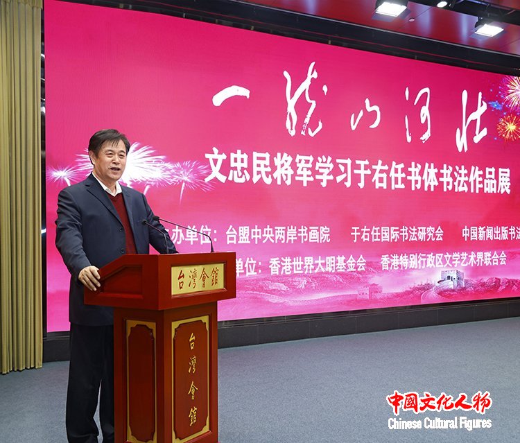 1月15日,由台盟中央两岸书画院、于右任国际书法研究会、中国新闻出版书法家协会联合主办,世界大明基金会(香港)、香港特别行政区文学艺术界联合会协办的“一统山河壮——文忠民将军学习于右任书体书法作品展”在北京台湾会馆隆重开幕