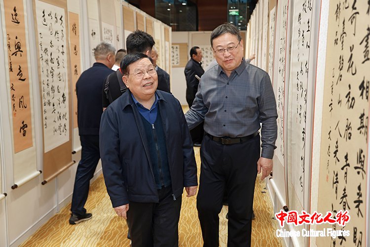 解放军原副总参谋长张黎上将在文忠民将军和中国新闻出版书法家协会主席王云武的陪同下参观展览