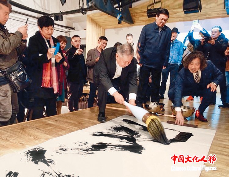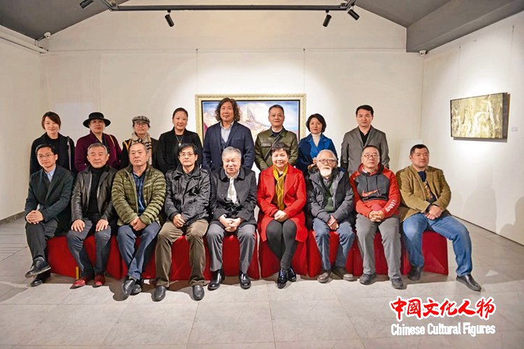 李庚与出席“大美融合——中国水墨遇上马勒交响曲”艺术展开幕式的艺术家嘉宾合影留念