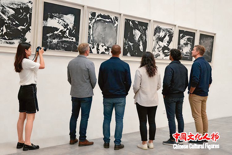 观众在展览现场欣赏李庚创作的水墨系列作品