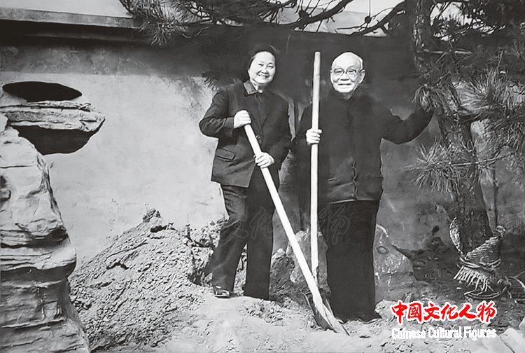 李庚先生的父亲李可染先生和母亲邹佩珠女士一起种树