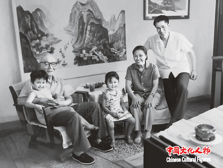 李庚先生与父亲李可染先生、母亲邹佩珠女士、女儿李落落、李小可先生之女李小曦在师牛堂合影