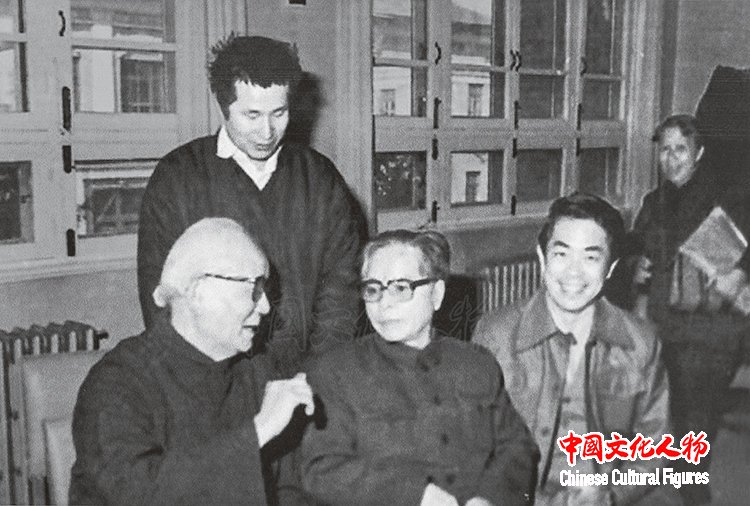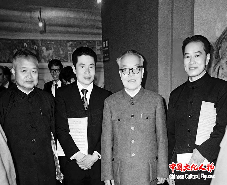 李庚先生与父亲李可染先生、画家关山月先生、画家范曾先生