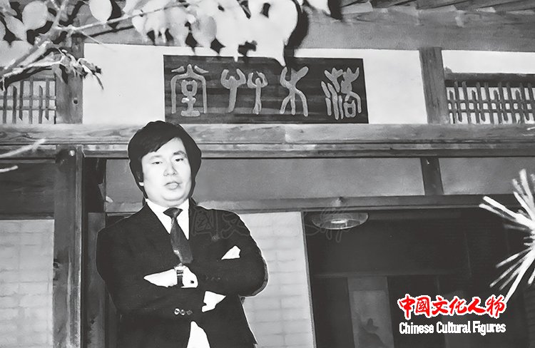 李庚先生在居所听雨楼(李可染题)