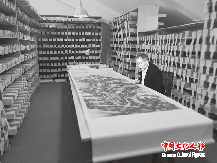 李庚先生在李可染画院收藏室工作