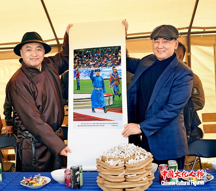 此次赠礼并非偶然,而是王保胜长期投身中蒙人文交流的自然延续。2023年,他受邀出席蒙古国国旗日与国庆那达慕活动;同年6月29日,在北京中国大饭店举办的“中国—蒙古国经贸合作论坛”上,王保胜代表中国文化人物杂志社,与蒙古国蒙中经贸文化促进会签署战略合作协议,在蒙方副总理兼经济发展部长呼日勒巴特尔等政要见证下,双方约定以文化艺术展览、交流活动为纽带,推动“一带一路”与“草原之路”倡议深度对接,为构建中蒙命运共同体注入人文力量;2024年7月11日晚,应蒙古国总统呼日勒苏赫邀请,中国文化人物杂志社社长王保胜出席在乌兰巴托香格里拉酒店举办的庆祝国庆暨纪念蒙古人民革命胜利103周年国家宴会,并受到蒙古国总统呼日勒苏赫热情欢迎。