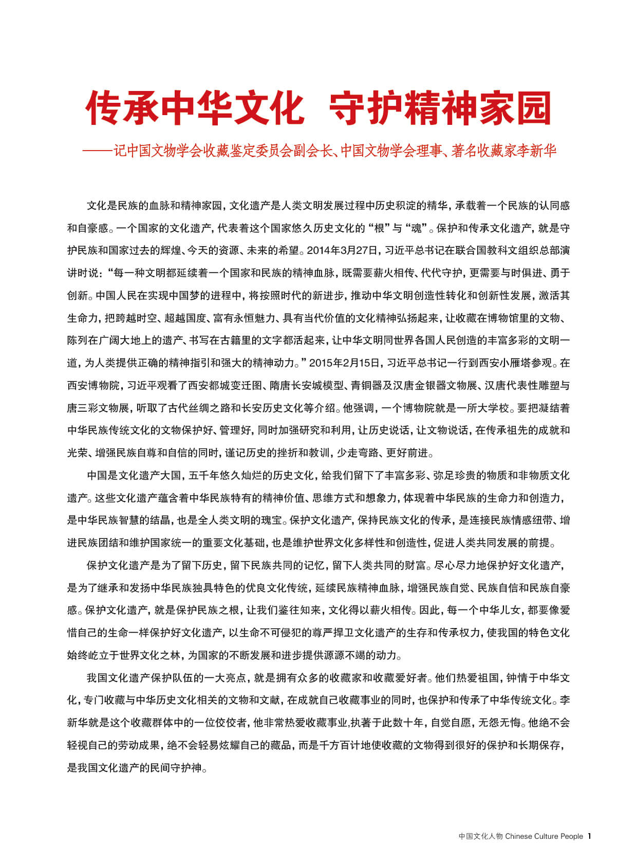 传承中华文化 守护精神家园