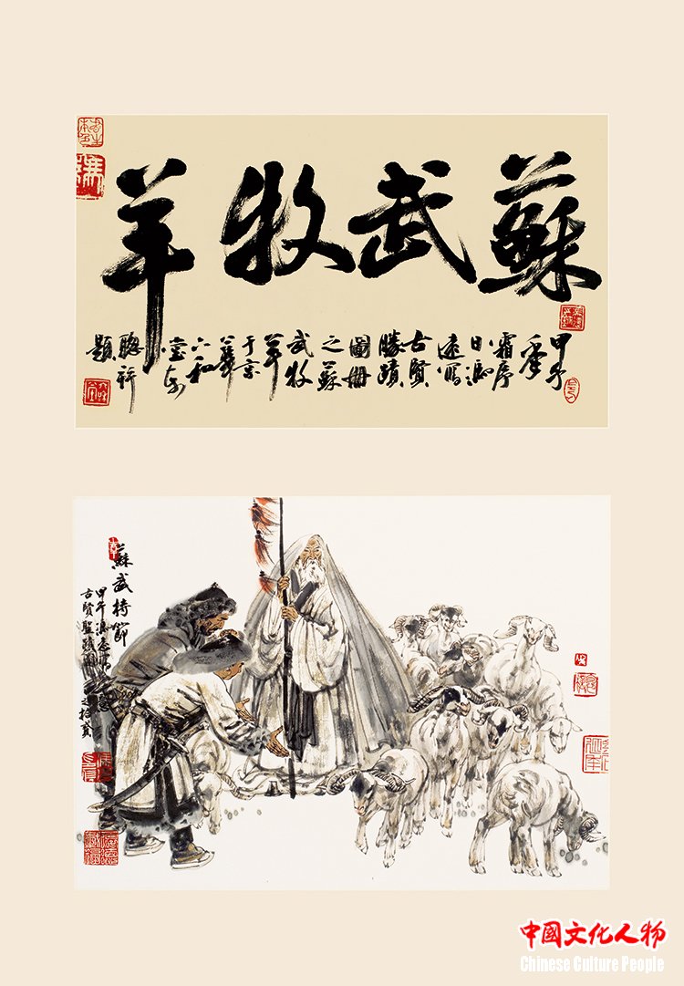 “Su Wu Herding Sheep” (58×82cm) by Feng Yuan