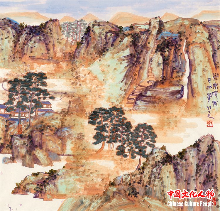 “Warm Breeze Among Layered Mountains” (68×68cm) by Niu Kecheng