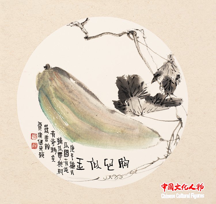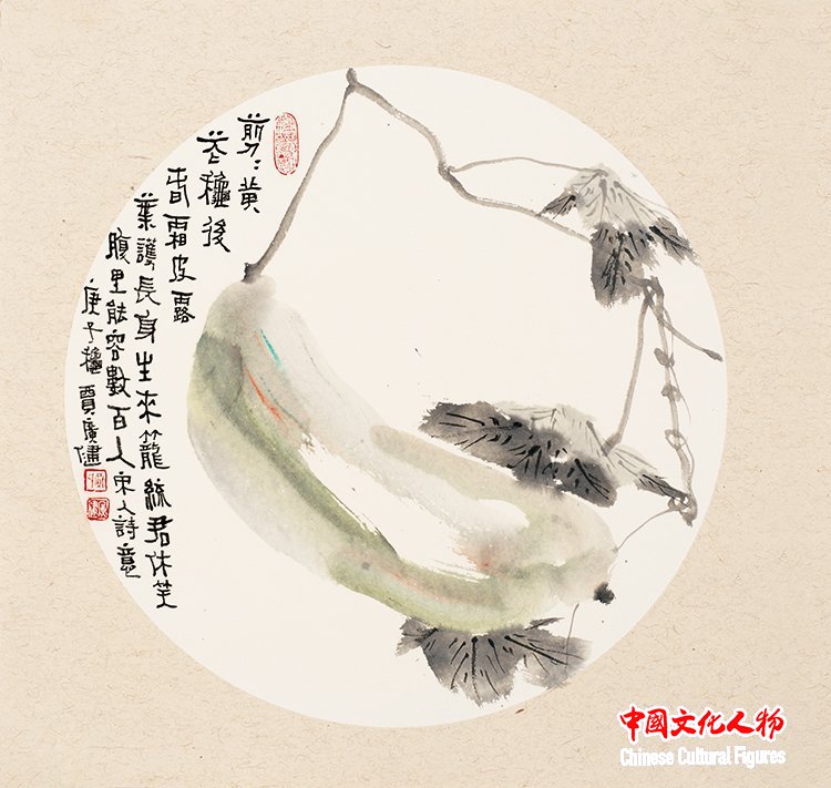 When viewing Jia Guangjian’s floral and avian paintings, one is likely impressed first by his precise grasp of form. The fruits and vegetables in his works are rendered with meticulous brushwork that follows the natural structure of the subjects. While employing realistic techniques, he imbues his ink and brushwork with poetic charm. Even in minimalist compositions, the beauty of nature touches the heart. He further emphasizes light to highlight the volumetric depth and weight of forms, a painterly technique rarely seen in classical Chinese art.
