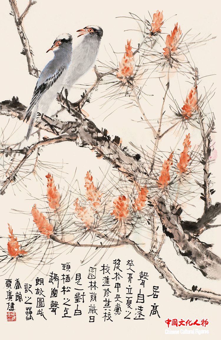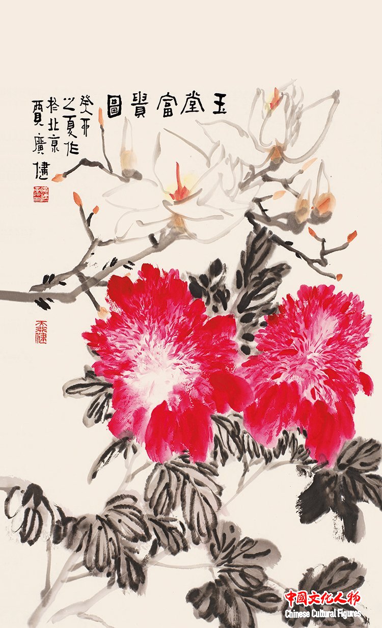Chinese Cultural Figures (Chief Editor: Wang Baosheng) Jia Guangjian is a renowned contemporary flower-and-bird painter and a key figure in the Beijing-Tianjin School. I mention this artistic movement because during the Republican era, Beijing and Tianjin developed a group of flower-and-bird painters who primarily inherited traditional styles. These traditions were remarkably preserved and evolved within Tianjin's local art community, particularly at the present-day Tianjin Academy of Fine Arts. Early pioneers such as Sun Qifeng and Huo Chunyang sought to blend the artistic essence of Qingteng Baiyang and Bada Shanren's legacy with modern sensibilities. Jia Guangjian emerged as a trailblazing figure who transcended this cultural lineage, forging his own artistic path.