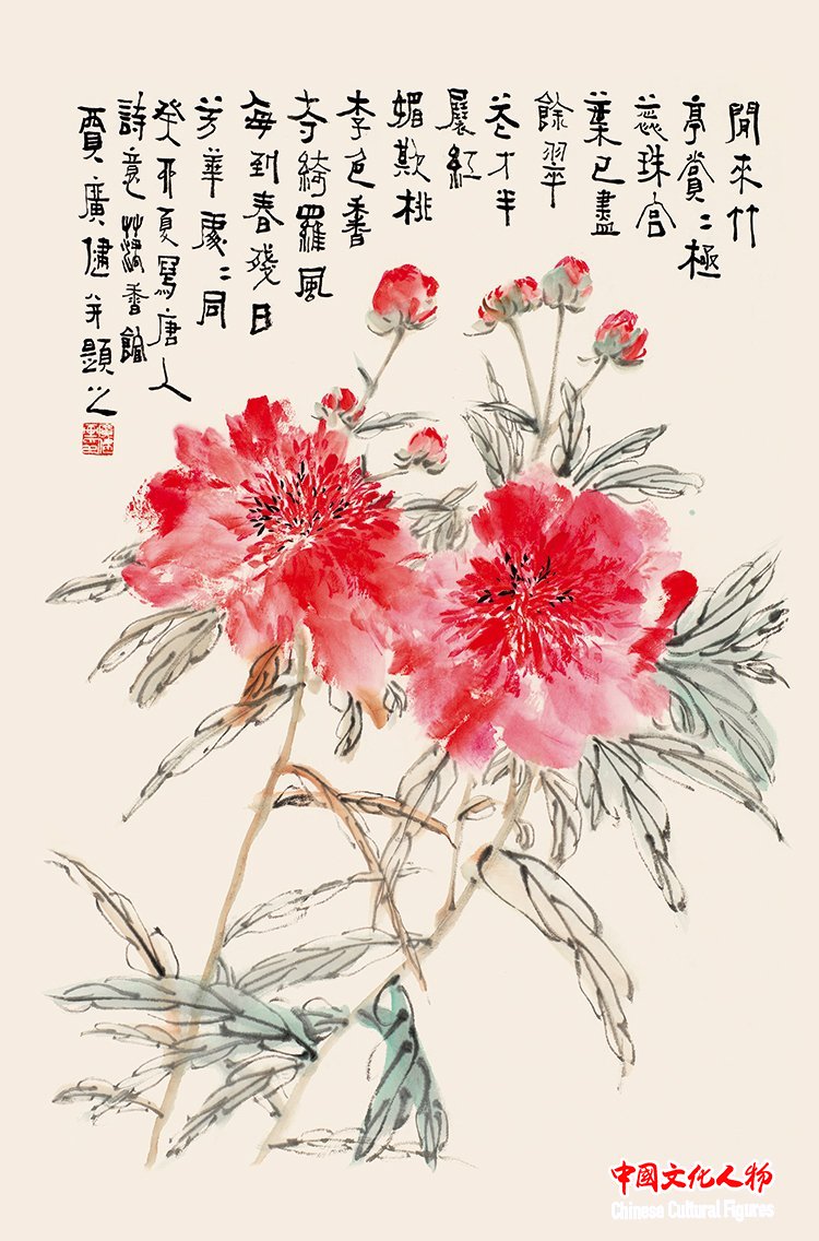 “The Red Peonies Bloom Year After Year” (45×68cm) by Jia Guangjian