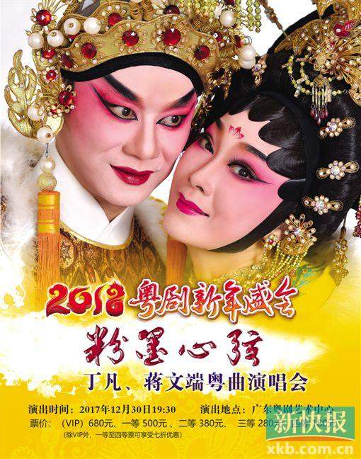 2017年12月29日、30日,由广东省文化厅主办、广东粤剧院承办的粤剧年度盛事“2018粤剧新年盛会”将在广东粤剧艺术中心连演两晚,与知音共迎新年。据了解,两晚的节目各具特色,29日晚上演的是大型神话粤剧《柳毅奇缘》,30日晚则是《粉墨心弦——丁凡、蒋文端粤曲演唱会》。