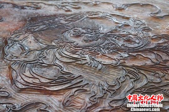“如今,很多中国版画创作都是按照西方的标准,我们要有中国自己的版画,要让这一古老艺术发出光芒。”西泠印社理事张耕源说。27日,杭州十竹斋展出由国家级非物质文化遗产代表性传承人魏立中主持创作的木板水印千手千眼观音。