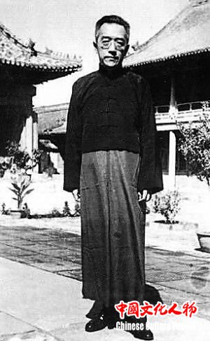 在北京前门附近的旅馆走廊,有一位身穿长袍,戴着眼镜的文化人不停徘徊。