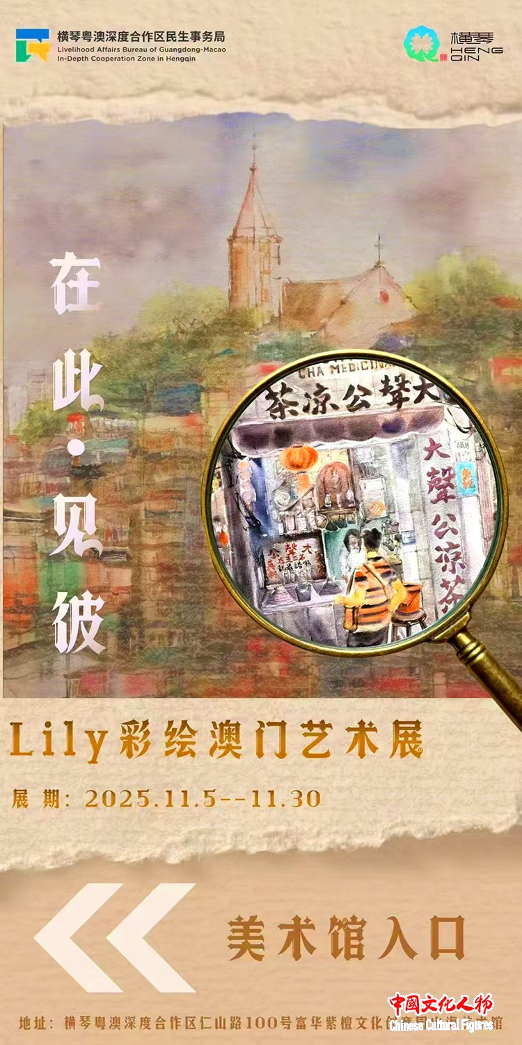 中国文化人物(记者 苏晴)11月8日,由横琴粤澳深度合作区民生事务局、澳门福建同乡总会支持,横琴粤澳深度合作区山海美术馆主办,横琴富华紫檀博物馆、澳门城市大学广东校友会协办,广东清风明月文化集团承办的“在此·见彼——Lily彩绘澳门艺术展”在横琴山海美术馆隆重开幕。