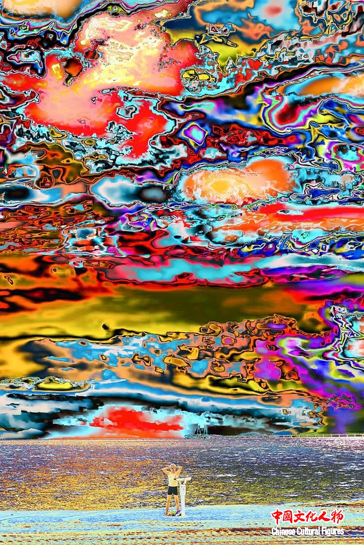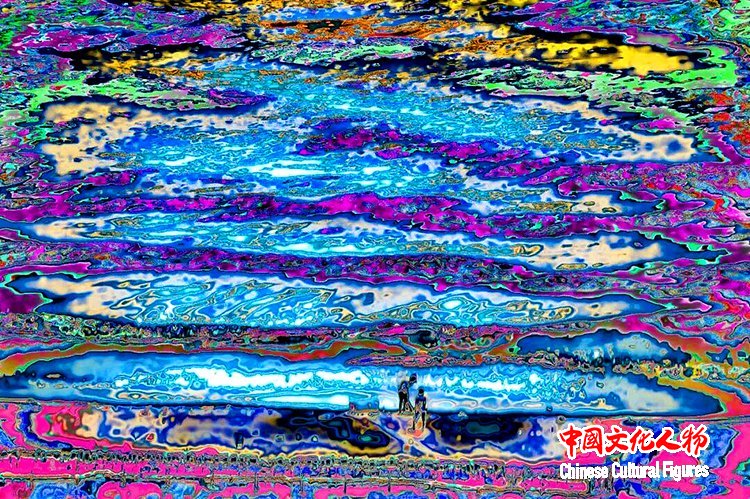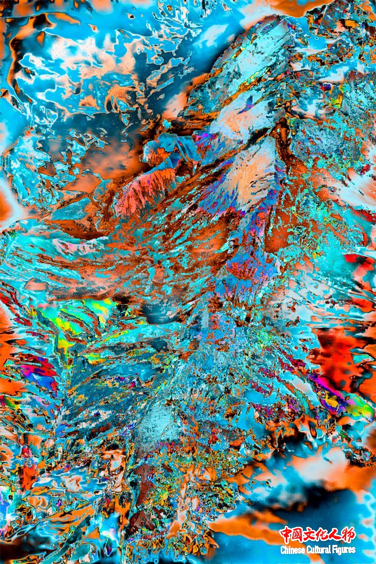 官宏滔进一步阐释,数码摄影的本质是数据捕捉,而人类习惯的颜色不过是人眼与大脑的主观处理结果,现实本身拥有无限种可能性,这与量子力学中的“观测者效应”不谋而合——观测行为本身会影响被观测对象,所谓“现实”,不过是主观视角下的定型认知。此次展出的《非观:天开之时》(2020)、《非观:最后的浸礼》(2023)、《非观:破译中50%》(2022)、《非观:最后的冬泳》(2023)等系列作品,完整呈现了他的创作脉络:从盘古开天的神话意象,到信息之海的个人感悟;从“山是水、水是山”的万物共生理念,到数字时代人类生存状态的叩问,每一件作品都融入了他跨越中西文化的生活体验,将抽象的哲学思考转化为可感知的视觉艺术。